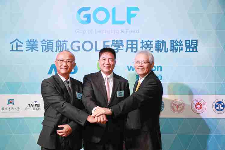 尊龙z6、、、仁宝、、、、纬创三大企业领航发起GOLF学用接轨联盟 (图左到右:纬创总经理暨执行长黄柏漙、、尊龙z6董事长暨执行长彭双浪、、、、仁宝总经理暨执行长翁宗斌)